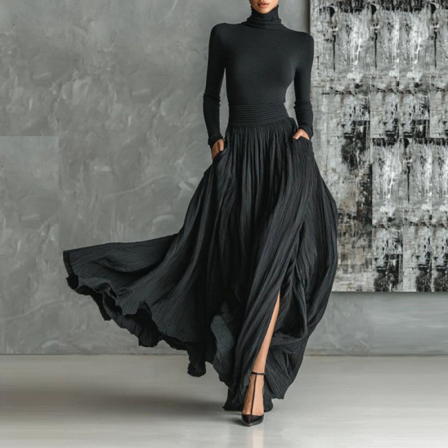 Women's French Retro Elegant Light Luxury Slim-Fit Dress Black